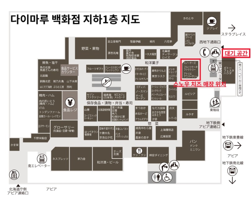 다이마루 백화점에서 스노우 치즈 오픈런을 계획하시는 분들이라면 반드시 지하 1층에서 대기하시길 바랍니다.